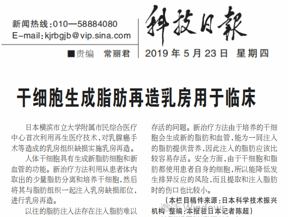 2019-05-24 查看更多日本橫濱市立大學(xué)附屬市民綜合醫(yī)療中心首次利用再生醫(yī)療技術(shù),對乳腺癌手術(shù)等造成的乳房組織缺損實施乳房再造。人體干細胞具有生…
